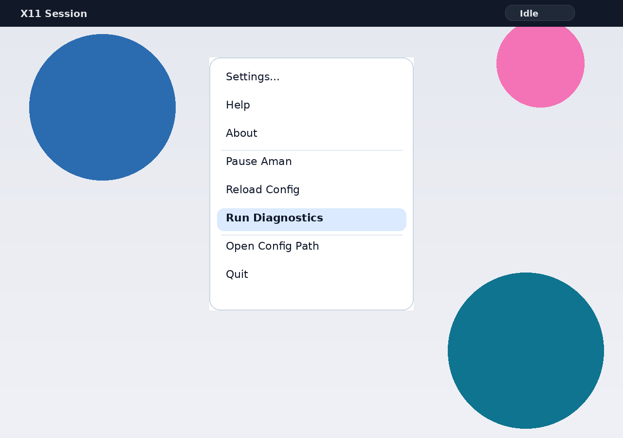 Make the X11 user path visible on first contact instead of burying it under config and maintainer detail. Rewrite the README around the supported quickstart, expected tray and dictation result, install validation, troubleshooting, and linked follow-on docs. Split deep config and developer material into separate docs, add checked-in screenshots plus a short WebM walkthrough, and add a generator so the media assets stay reproducible. Also fix the CLI discovery gap by letting `aman --help` show the top-level command surface while keeping implicit foreground `run` behavior, and align the settings, help, and about copy with the supported service-plus-diagnostics model. Validation: `PYTHONPATH=src python3 -m unittest tests.test_aman_cli tests.test_config_ui`; `PYTHONPATH=src python3 -m unittest discover -s tests -p 'test_*.py'`; `python3 -m py_compile src/*.py tests/*.py scripts/generate_docs_media.py`; `PYTHONPATH=src python3 -m aman --help`. Milestone 4 stays open in the roadmap because `docs/x11-ga/first-run-review-notes.md` still needs a real non-implementer walkthrough.